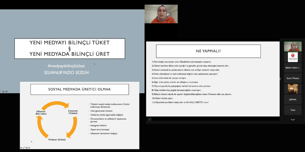 Hızla gelişen ve değişen toplum içerisinde Müslüman bireyler olarak bu hıza ayak uydurmak; kendi inançlarımız, hassasiyetlerimiz, değerlerimiz bağlamında konuları yeniden ele almak gerekir. Buna hizmet etmesi bakımından YEKDER Yetişkin Eğitimi Komisyonu “Bizim Meselelerimiz” teması etrafında sanat, eğitim, sağlık,aile, edebiyat, tefsir, hadis gibi alanlarda çevrimiçi seminerler düzenlemektedir.