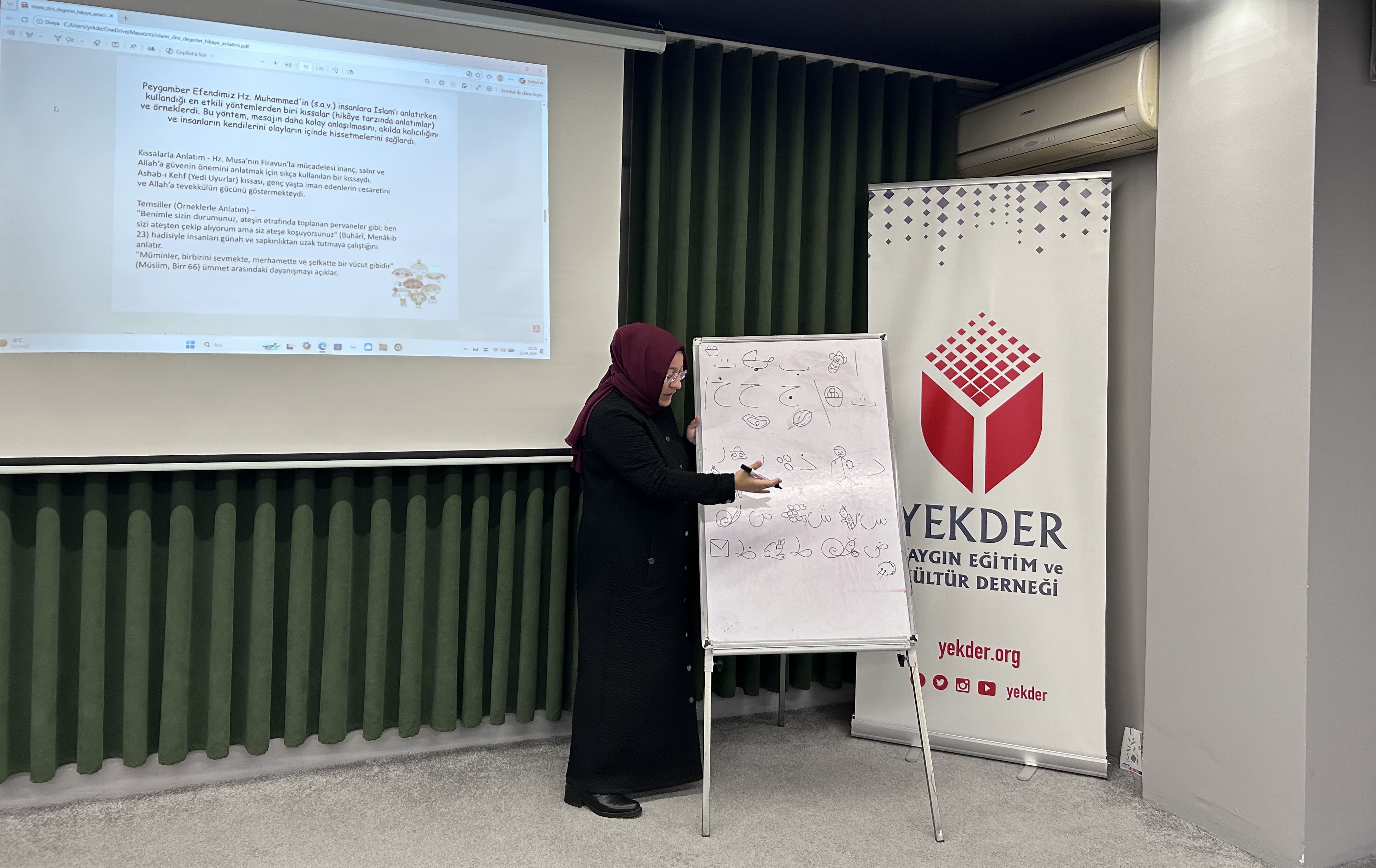 İkinci derste Recep Erdil ile “Masal ve Hikâyelerin İyileştirici Gücü ile Psikolojik Yorumlanması” başlıklı dersimizde masal ve hikâyelerin bireylerin duygu dünyası üzerindeki etkisi ele alındı. Anlatıların çocukların iç dünyasını anlamada nasıl bir araç olabileceği üzerinde durularak, karakterler ve olaylar üzerinden psikolojik çözümlemeler yapıldı. Katılımcılara, hikâye ve masalların iyileştirici yönünü fark etmeye ve bu anlatıları daha bilinçli kullanmaya yönelik hem teorik bilgiler hem de uygulamalı örnekler sunuldu.