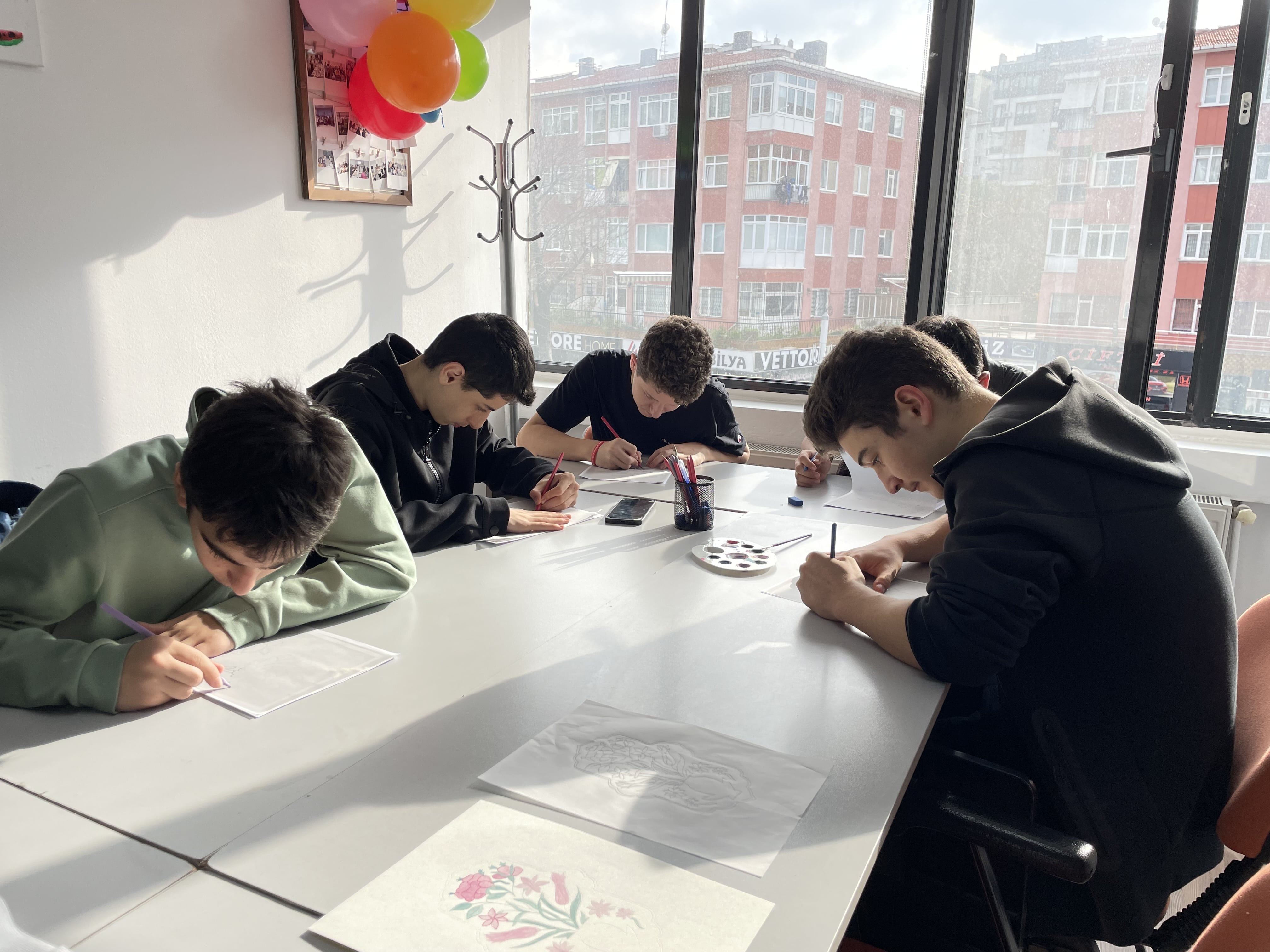 Lise kız ve erkek gruplarımız ise İslam Sanatları kapsamında düzenlenen Tezhip Atölyesinde bir araya geldi. Geleneksel sanatlarımızdan biri olan tezhip sanatını yakından tanıyan öğrencilerimiz, sabır, estetik ve dikkat gerektiren bu sanatı uygulamalı olarak deneyimledi. Atölye çalışması boyunca hem el becerilerini geliştirdiler hem de kültürel mirasımızın inceliklerini öğrenme fırsatı yakaladılar.