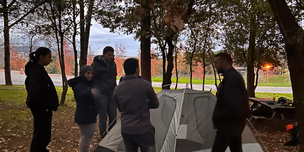 Atölye, Beykoz Spor Ormanı’nda gerçekleştirildi. Katılımcılar bu hafta, ilk derste öğrendikleri teorik bilgileri pratiğe dökme fırsatı buldu. Çadır kurma tekniklerinden kamp alanı düzenine, doğada güvenli yaşamın temel adımlarını içeren bu oturumda katılımcılar, ekip çalışmasıyla kendi çadırlarını kurarak kamp alanı planlaması yaptı. Doğada barınma, doğru malzeme kullanımı ve çevreyle uyumlu kamp düzeni oluşturma konularında bilinç kazanan katılımcılar, aynı zamanda doğada yaşamın gerektirdiği sorumluluk bilincini de pekiştirdi. Atölye, katılımcıların hem doğayla bağ kurmalarını hem de günlük yaşamda kullanabilecekleri pratik beceriler geliştirmelerini hedeflemeye devam ediyor.