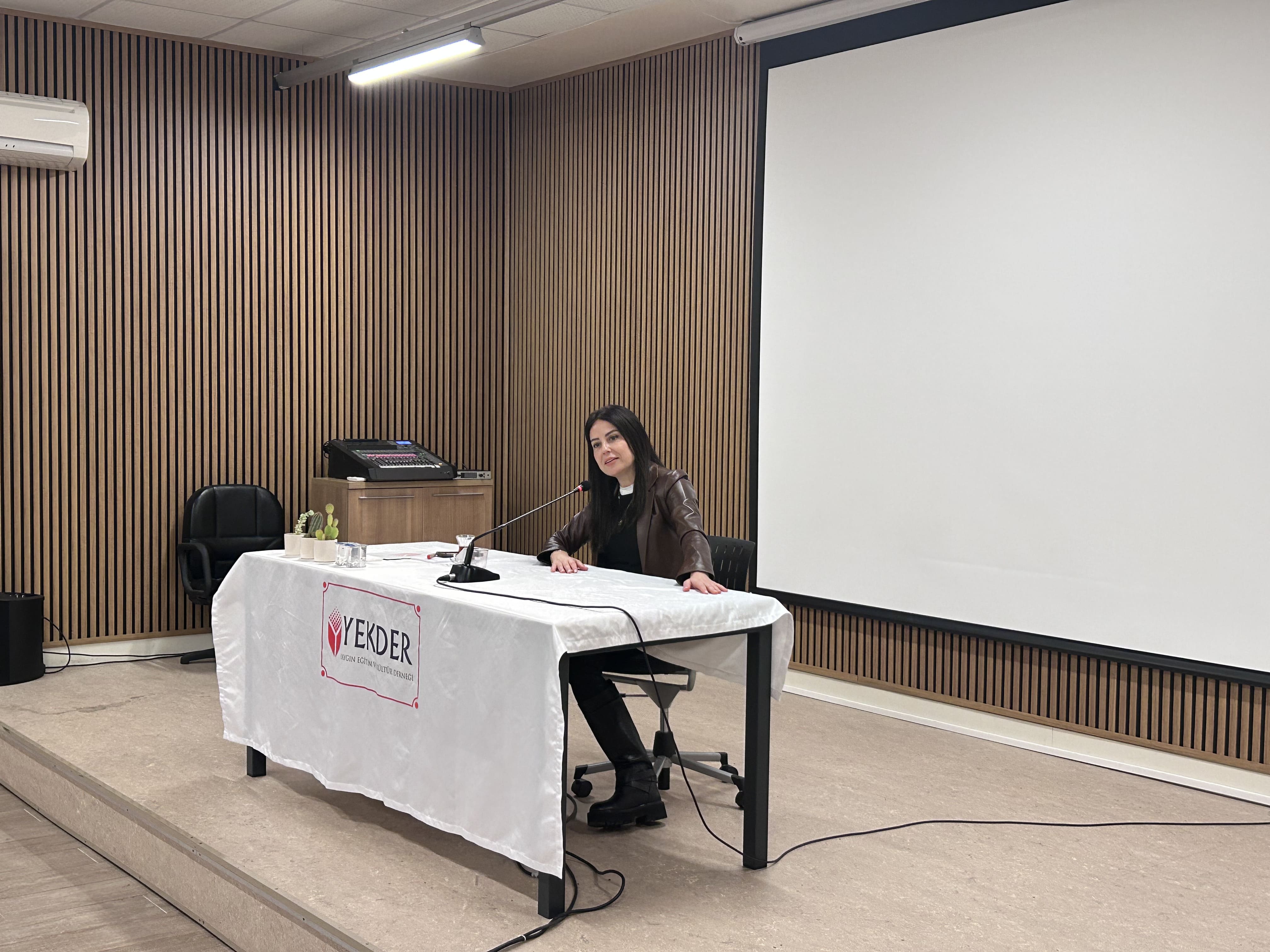 Etkileşimli bir şekilde gerçekleşen sunumda, günlük hayatta ve eğitim ortamında dilin doğru ve etkili kullanımının önemi ele alındı. Çınar, öğretmenlerin kullandığı dilin öğrenciler üzerindeki etkisine dikkat çekerek, açık ve anlaşılır iletişimin öğrenme sürecini nasıl desteklediğini örneklerle anlattı.