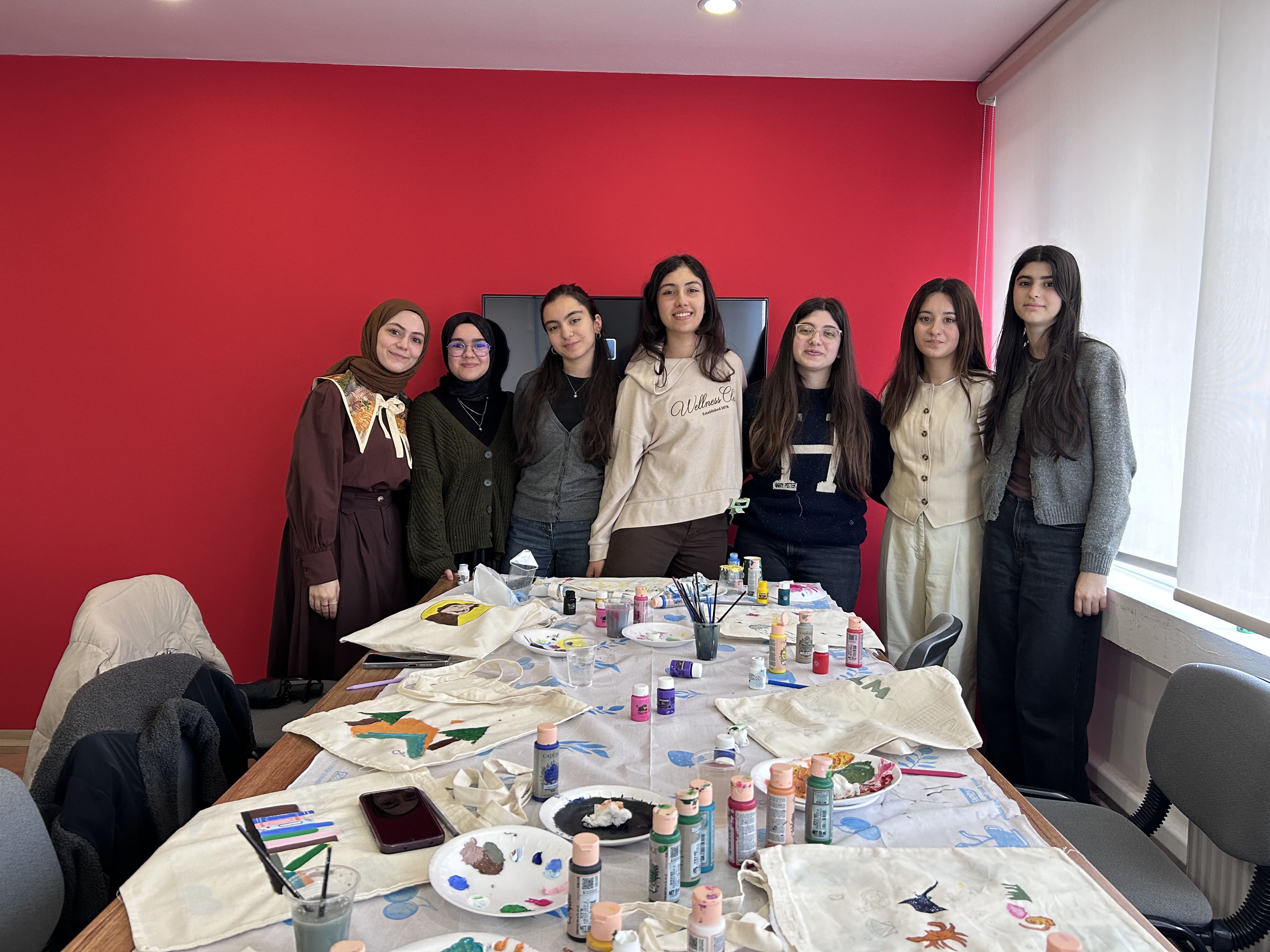 Ortaokul öğrencileri, Sevde Ergen moderatörlüğünde gerçekleştirilen suluboya atölyesinde renklerle ifade becerilerini güçlendirirken; lise grubu öğrenciler ise çanta boyama etkinliği ile el emeği ürünler ortaya koyarak haftayı tamamladı.